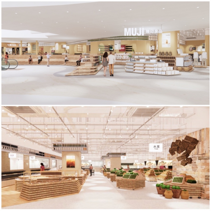 MUJI無印良品中国首家生鲜复合店坐落于上海瑞虹天地太阳宫地下一层,占地面积4130平方米,包括店铺和超市两大区域。其中,店铺由MUJI设计和运营,超市为MUJI提供设计,京东集团旗下七鲜超市进行运营。