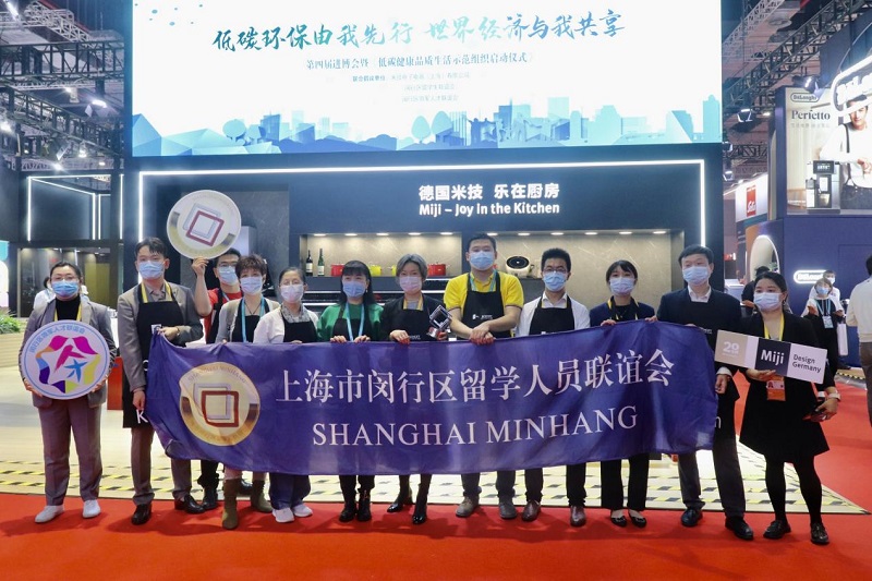 展台现场还有一群特殊的志愿者在米技展台前热情地为前来参观体验的观众讲解。据了解,他们是来自闵行区留学生联谊会、闵行区领军人才协会的志愿者,此次特意前来为同是留学生的米技董事长季残月助阵,向现场观众介绍米技低碳健康绿色的烹饪理念。进博会现场,米技与上述两家单位联合举办低碳健康品质生活示范组织启动仪式,倡议大家主动担当、全力作为,助力“双碳”,努力放大溢出带动效应,为加快形成世界级产业集群,更好引领低碳绿色经济高质量发展而努力。