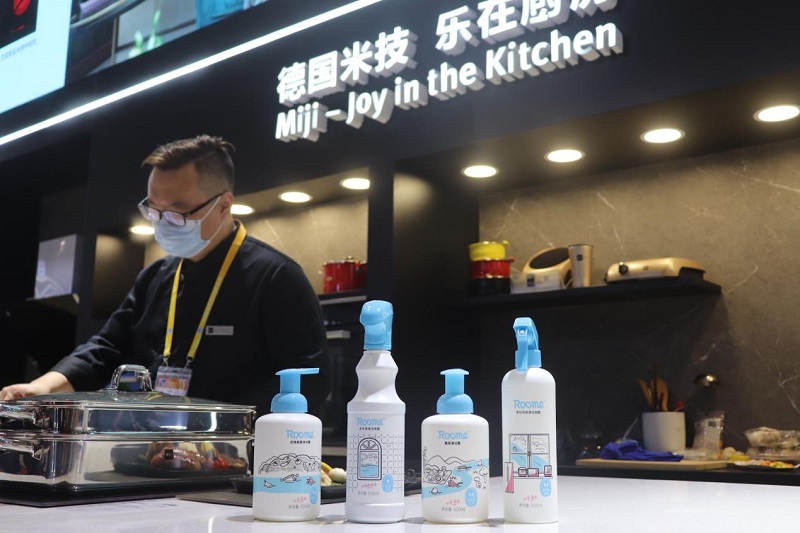据悉,今年10月米技智慧云商城正式开通上线。进博会现场,米技主播通过视频号同步直播展会盛况,并联通智慧云商城推出一系列产品演示及优惠活动。除了米技自有产品之外,智慧云商城打通上下游合作资源,引入来自世界各地的厨房配套优选好物,不仅有ROOME厨房系列清洁产品,还有德国葡萄酒、日本大米等优质食材,更有德国进口橱柜等高端私人订制厨具供消费者选择,轻松解决厨房家装、买菜烹饪、厨具清洁等问题,一站式购物让绿色健康的品质生活即刻从米技“云端”开启。
