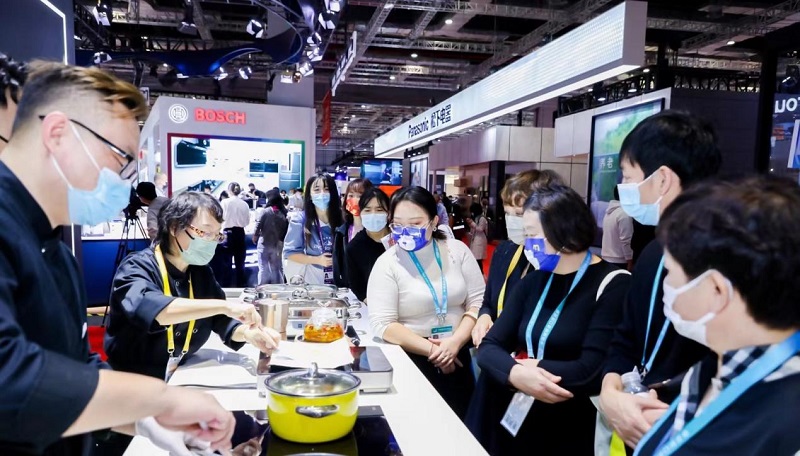 每年进博会都带来首发新品的米技,在本届进博会现场带来了今年全球首发的“新朋友”,创新一体化烹饪平台——集成平板烟灶,这也是米技专为中国改善型居住升级需求而设计,将Star 5 Plus Domino德国制造五系多米诺高级感应灶与下吸式烟机组合,采用模块化设计,可以满足用户个性化定制的需求,释放更多厨房空间,使厨房空气更加清新舒适。在展台上,米技大厨“米阿姨”使用集成平板烟灶现场烹饪,烹饪过程中产生的油烟及水汽在上升前便快速被下吸式烟机处理,饭菜飘香却无油烟,整个展台依旧保持清洁舒适,令现场不少观众赞叹不已。