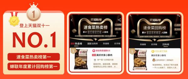 在今年的双11购物季,疫情居家场景和“最冷冬季”的预测激发了人们囤积美食的热情,各类食材产品均创下销售高峰。其中,由美好食品率先开发的农家小酥肉、香酥排骨等酥炸系列产品更是迎合了年轻人的冬季美食喜好,以超过一千四百万的销售业绩成为天猫速食菜热销榜和回购榜的双冠王。