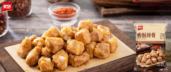 香酥排骨一直是我国西南地区逢年过节必不可少的一道传统美食,从选料到制作都需要精心制作和多人配合,这一繁复的制作流程也是家人之间爱与关怀的展现。但也正是由于香酥排骨制作工艺的复杂,想要在现代厨房复制这份美味并非易事。原料的新鲜程度,火候细微的差别,乃至重要工序的顺序失误,都会让香酥排骨最终的口味受到影响,这也让这道菜品越来越少出现在大众餐桌之上。为了还原这份家的味道,美好食品依托深耕30余年的肉类食品加工经验,精选优质原料,并采用中台研发方式,让研发人员走进各个餐厅的餐厨操作间挖掘香酥秘方,并将资深的大厨邀请到企业研发中心,一比一复制最传统的手工制作方式,匠心对待每一个操作细节,攻克每一个技术难关。经过研发团队长期的潜心钻研和反复的盲测、调整,美好食品终于在生产线上完美复原了最为经典的香酥排骨制作流程。成型的香酥排骨产品外酥里嫩,香味四溢,而且操作便捷,适用于火锅、零食、小吃等多种场景,蒜香、椒麻、麻辣等多种口味也更迎合大众的喜好,符合当代人高品质生活需求,随时随地还原记忆中家的味道。