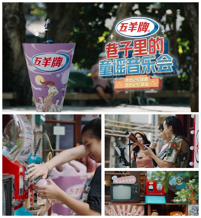 巷子里的音乐会:童谣唱响,五羊踏上归来之路。 “巷子里的童谣音乐会”快闪,坐落在荔湾湖公园的老巷子里,一场“属于每个人的音乐会”,让邻里街坊唱出自己的童年记忆。正如广州本身的文化一般的真实自在,尽管在高压的一线城市,却始终保留特有的真实和悠闲的氛围。把雪糕里的情感味推向了高潮。