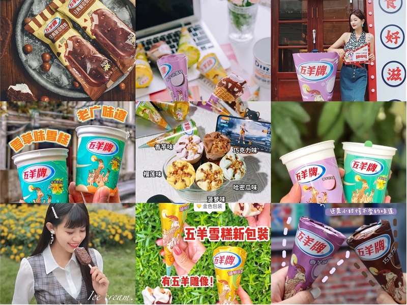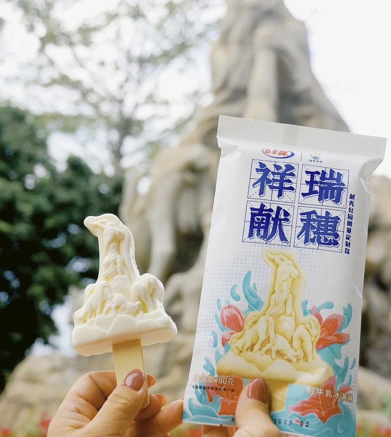 文创雪糕:五羊近期还推出了与广州地标越秀公园联名的网红雪糕,在越秀山的五羊雕塑下品尝五羊雕塑形态的五羊雪糕,打卡值满分,更是迎合目前国潮文化的趋势。