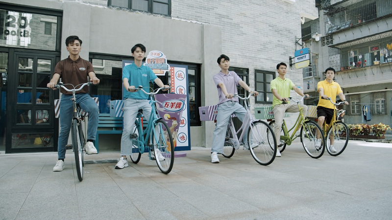 五色雪糕单车巡游:代表五羊经典五色甜筒的五种颜色的雪糕单车,在市区发起击掌传递巡游活动。在炎热的夏天,通过一支甜筒,将甜蜜和情怀传递给新老街坊。
