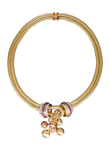 来自Passementerie(金银饰带)的灵感,诞生了一系列贴合身体韵律动感的作品。例如蝴蝶结和缎带的设计,诠释了战后新生女性的灵动,以织物或绳索为灵感的珠宝,完美地塑造勾勒了女性佩戴者的优雅气质。