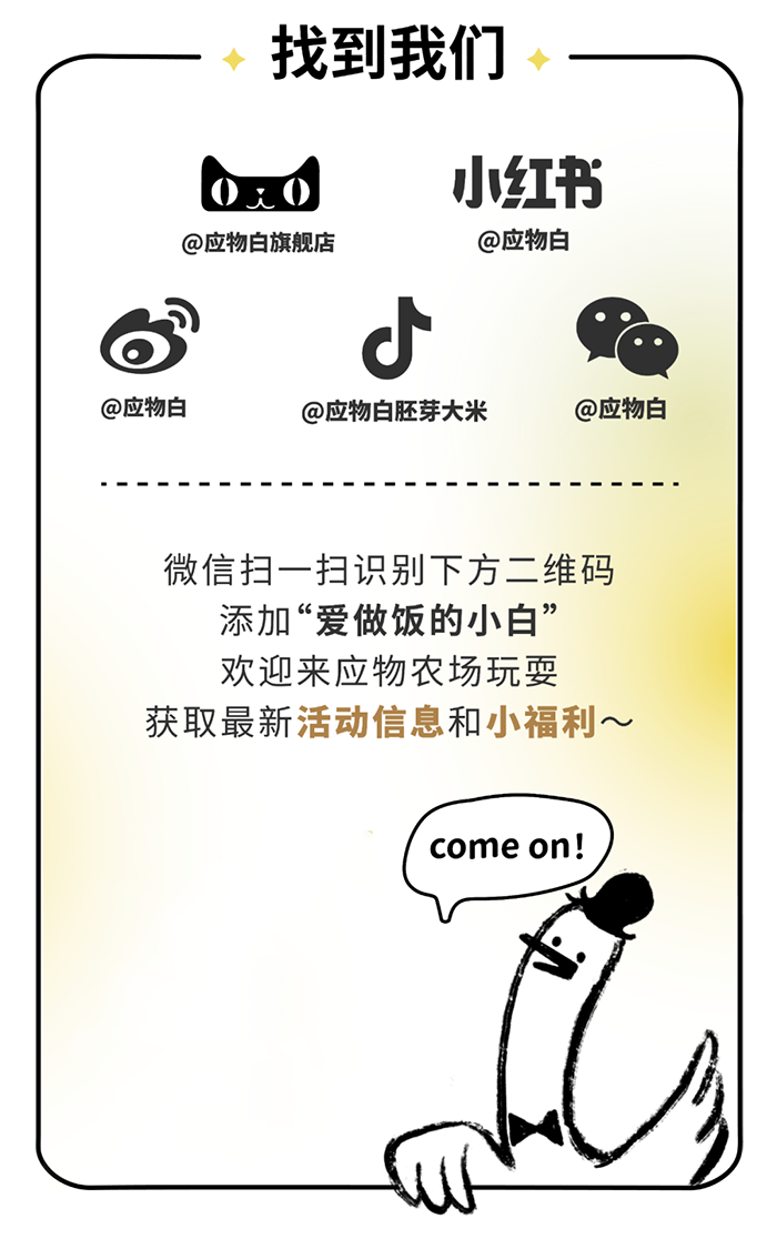 虽然本次的应物白X盒马新锐品牌日已经落下帷幕,但应物白会一直陪伴大家,用主食升级新方案,让每一个中国新世代家庭,都吃出底气和幸福。我们也期待,未来能与大家在更多有趣的场景下再次相遇,一起做更有意思的事,记录更多好玩的故事。你们的喜欢,就是我们最大的动力。