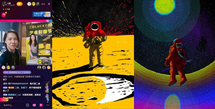 此外,“三目阿特”潮流画廊的IP创造者——瞐艺术,也在9月21日当天亮相珠宝潮奢行业活动。当晚,瞐艺术与钟表领域千万粉丝达人@大能 直播连线,共同品味艺术家张长江老师的艺术版画;评点独家首发作品「月球」,该作品由《流浪地球》插画师-陈滨创作,具象化的潮流艺术和魅力吸引50万人现场观看。