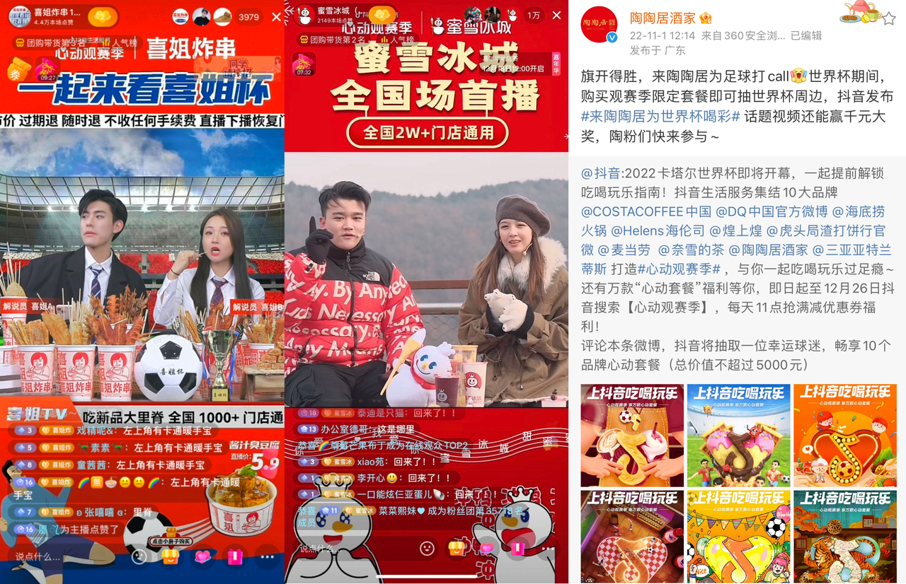 作为2022世界杯持权转播平台、央视官方直播合作伙伴,抖音无疑成为世界杯期间的流量集中地,覆盖世界杯全赛程的“心动观赛季”更是通过丰富的资源扶持为商家的节点营销“锦上添花”。对于商家来说,这是打造“爆品”、拓展销量、提升品牌认知的绝佳机会,平台与商家的深度合作一触即发。