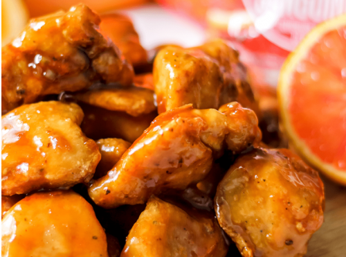 橙香酱汁:1/2杯新奇士脐橙汁、1/2杯新奇士血橙汁、1/2杯水、1/2杯红糖、1汤匙米酒醋、1汤匙酱油、1汤匙新奇士柠檬汁、1汤匙新奇士脐橙皮、1/4茶匙磨碎的姜、3瓣蒜