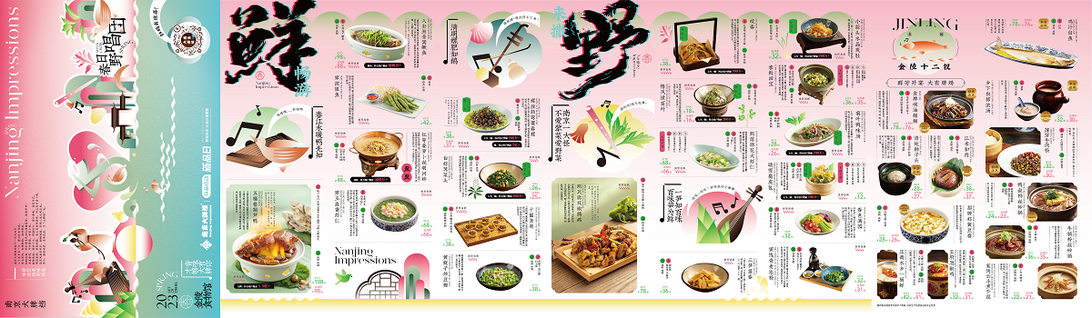 该菜单品类以用户关注的荠菜、香椿、螺蛳 、鸭子 、鳜鱼等为原材料,融合南京大牌档品牌特色进行研发。同时活动以“鲜”、“野”为基调,设计出了八卦洲青蒿鳜鱼、螺丝转弯覆春螺、明前雨花大虾仁、三笋报春等等充满金陵特色和春日气息的别趣菜名,有力调动用户关注。