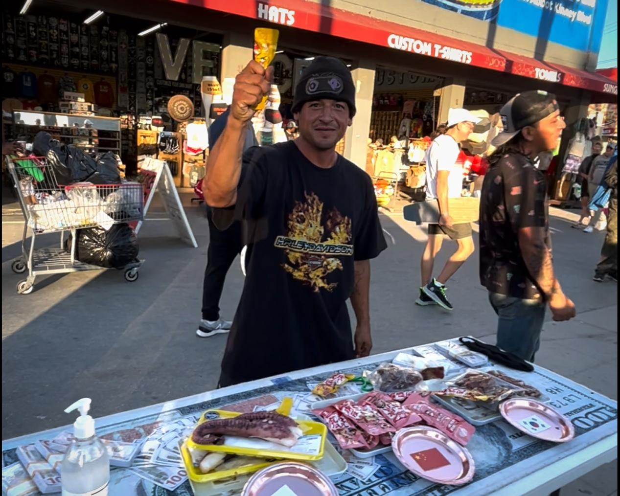 亚运会临近开幕,在美国威尼斯海滩,一场“美食亚运会”率先开赛。这是视频博主毒角show发起的神秘东方美食挑战,汇集了来自中日韩三国的美食——虎皮凤爪、章鱼脚、猪蹄,80%的人吃后反馈最喜欢来自中国的鸡爪,于是有了一群外国人在海滩上火热啃鸡爪的名场面。