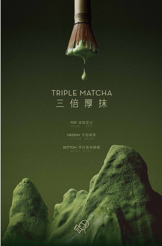 来自“浓抹芝士”的丝滑浓醇、液体抹茶牛乳的馥郁浓香和“手打浓抹糯糯”、抹茶奶冻的甜软口感,令各具特色的“千目抹茶”以三种不同形态在一杯“三倍厚抹”中彼此交融,品尝间鲜醇苔香缓缓舒展,在口腔中奏响“抹茶三重奏”,带来中国抹茶的三重创新。
