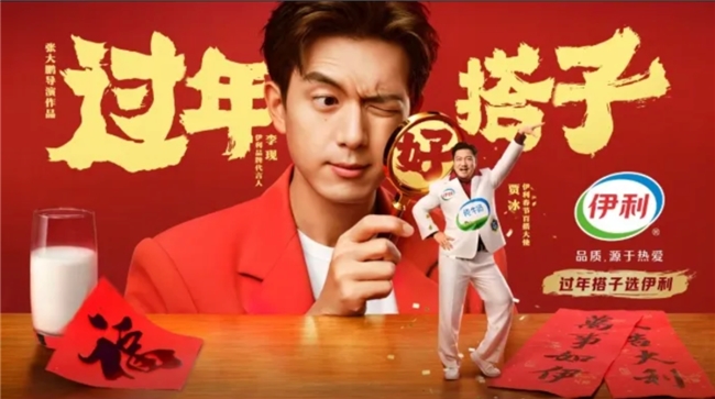 在这种文化趋势下,伊利敏锐地捕捉到消费趋势的变化,将产品从传统的节日礼品升级为融入多元生活场景的“过年好搭子”,并通过大胆创新,携手喜剧演员贾冰,以喜剧形式演绎了一支充满创意的广告大片,成功吸引了观众的注意力。创意大片中演员贾冰与李现的幽默演绎,成功将以伊利“百搭”这一品牌属性深植于消费者心智。