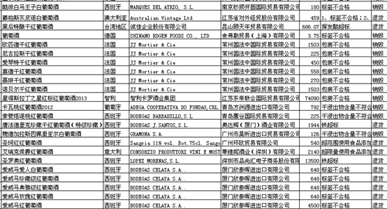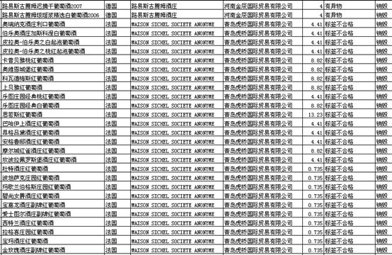 在1月进境不合格名单中,由青岛方洲源进出口有限公司申报进口的卡瓦桃红葡萄酒2012来自葡萄牙、由青岛鹰谷国际贸易有限公司申报进口的索蒙塔诺桃红葡萄酒来自西班牙,不合格原因均为“干浸出物不合格”。另一批次来自西班牙的魏德加拉斯因佩里亚尔白葡萄酒同样因“干浸出物不合格”而被销毁。
