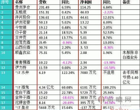 2015年前三季度白酒上市公司净利润排行榜