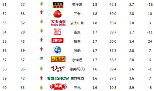 报告显示,在中国市场,中国品牌继续跑赢国际品牌,包揽消费者选择最多的前十位品牌排名,而前50名品牌中,有30个中国本土品牌,占到总体的60%。