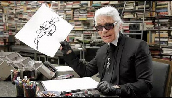 在Lagerfeld六十多年的设计生涯中,彩色铅笔在他设计画图时是最常用的工具。他在巴黎Rue Cambon31号的Chanel总店、罗马Largo Carlo Goldoni的Fendi旗舰店以及巴黎Rue Saint-Guillaume的Karl Lagerfeld同名品牌门店的墙上都留下过他的彩铅草图。这些铅笔画还经常出现在Lagerfeld的时尚活动邀请函以及政治性漫画上。