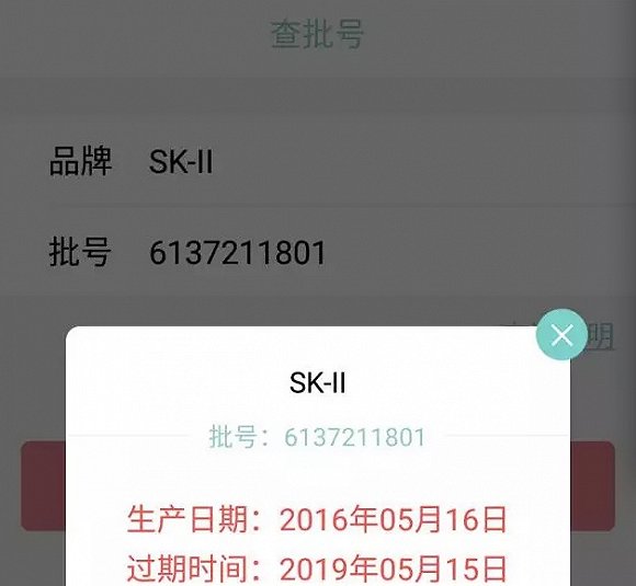 而输入上述SK-II的一串数字进某款提供查批号功能的APP,其显示结果如下。