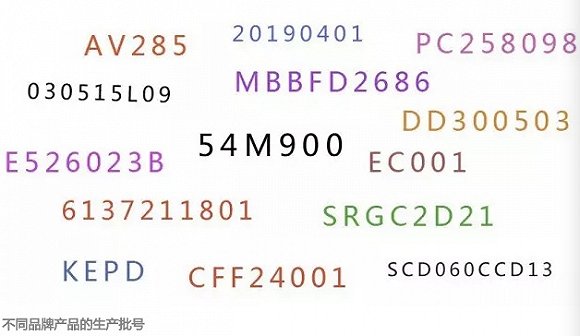 这一组由3位到10几位不等的数字或数字加英文字母组合的字符,就是生产批号。除了常规的生产日期,生产批号中还可以记录很多信息。