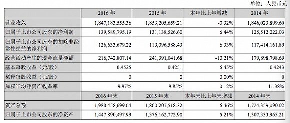 据全聚德最新发布的2016年业绩快报,全聚德在2014年至2016年三年,营业收入始终徘徊在18.5亿元,并无太多变化,净利润泽小幅增长。