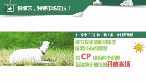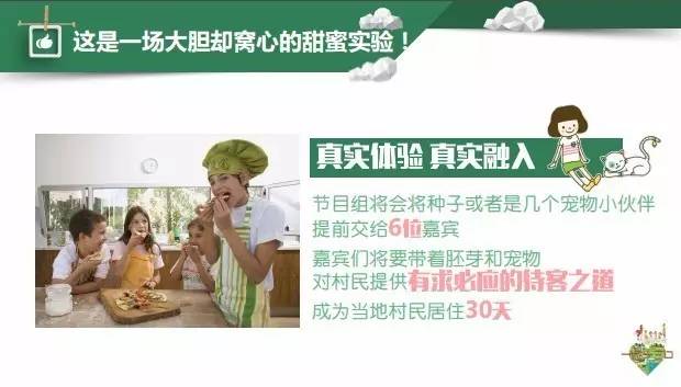 内容是营销的母体,芒果TV《一家十三口》既有《向往的生活》的恬淡惬意,又有《爸爸去哪儿》的温情柔软,节目看点十足双重基因自带爆款体质。首先,这是一场大胆却窝心的甜蜜实验,讲究真实体验真实融入节目组将会将种子或者是几个宠物小伙伴提前交给6位嘉宾,嘉宾们将要带着胚芽和宠物对村民提供有求必应的待客之道,成为当地村民居住30天。