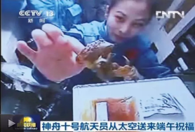 (神舟十号航天员王亚平在太空吃粽子)