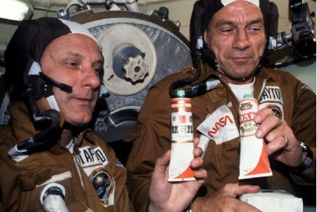 第一位进入外太空的苏联宇航员Yuri Gagarin在进入太空后,他的食物就是三管牙膏一样的东西,分别是两管160g的肉酱和一管巧克力酱,可以说是“太空最早的方便食品”。两位宇航员的太空经历也证实了,在太空无重力条件下人也可以吸收食物中的营养。