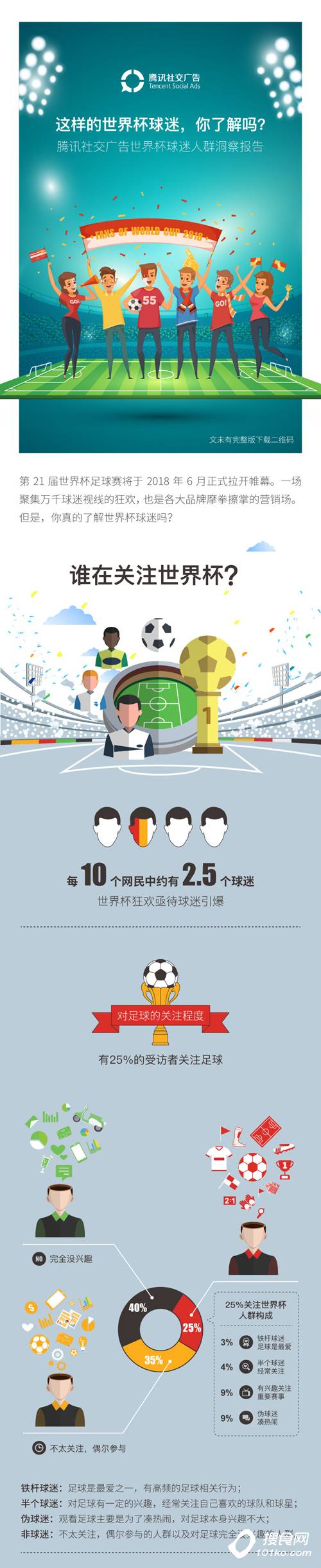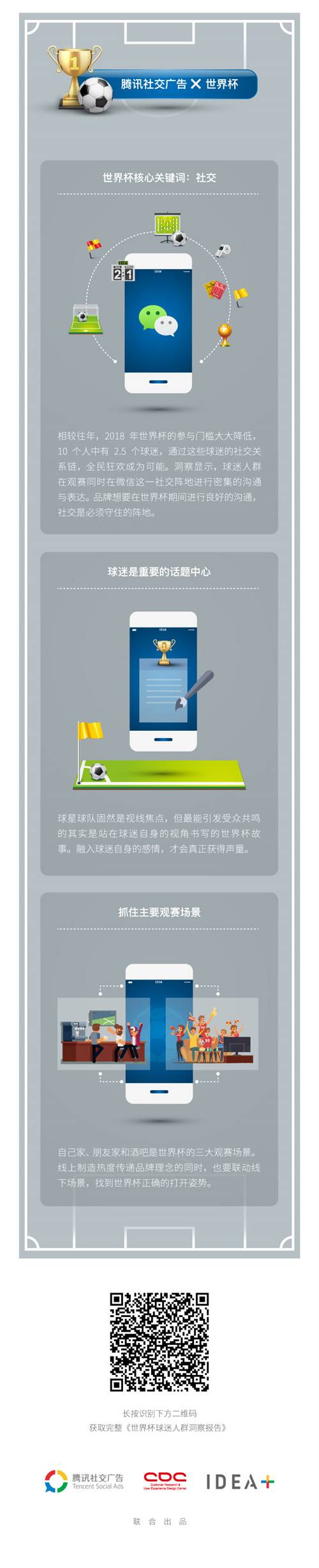 对于品牌主来说,如果想在世界杯营销中有所突破,社交平台无疑是找到目标消费者,并和消费者“玩”在一起的首选平台。想了解更多球迷与非球迷的画像与洞察吗?下滑查看腾讯社交广告的《世界杯球迷人群洞察报告》给你答案!