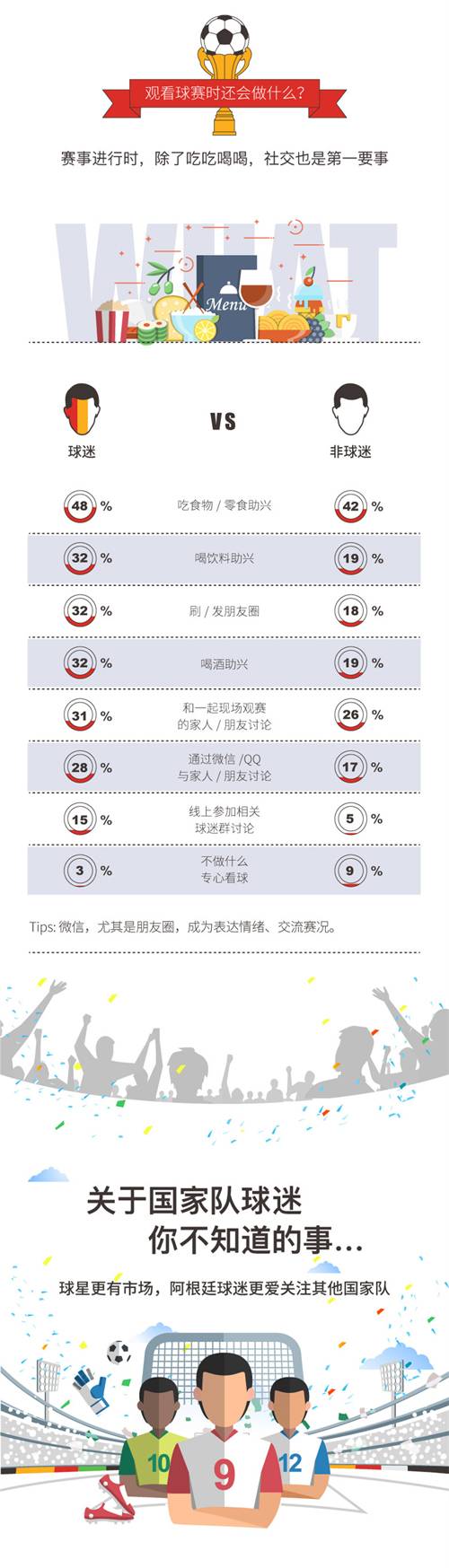 近日,腾讯社交广告出品的《世界杯球迷人群洞察报告》显示,世界杯既关于看球,更关于社交和分享欢乐。球迷人群和非球迷人群在观看比赛的同时,都会很愿意与亲朋好友聚在一起侃侃球,或是利用社交平台表达情绪。