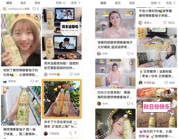 康师傅蜂蜜柚子借势综艺IP及明星流量,联合KOL在社交平台上进行花式种草,多角度演绎了产品“温润滋养 每天好气色”的卖点,同时通过OPPO和美图这些女性用户为主的APP实现了精准定位兴趣人群,多屏联动集中进行了品牌曝光。