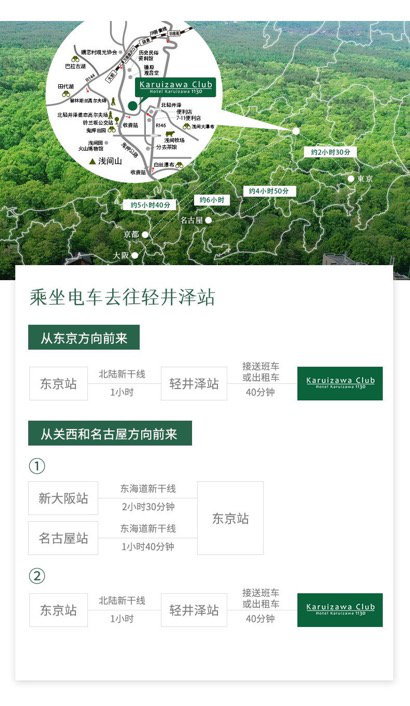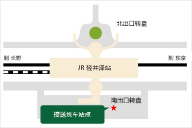 从JR轻井泽站南口到本酒店,每天都运行免费接送班车(免费班车),共计所需40分钟。