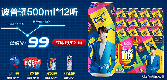 同时,为进一步贴近新生代消费群体,塑造时尚化、高端化的形象,2020年5月,燕京啤酒签下了明星王一博作为品牌代言人。6月,利用偶像效应营销的燕京啤酒推出了燕京U8致敬经典波谱罐、燕京U8热爱罐,这些新品在京东、抖音直播间都有频繁的露出。