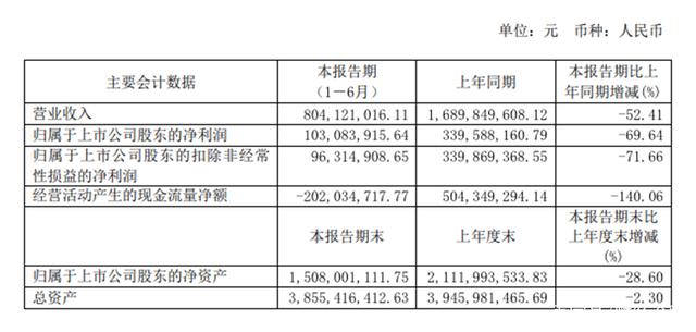 财务数据显示,今年上半年,水井坊实现营业收入和净利润同步大幅下滑,且经营活动产生的现金流量净额也下滑超过140%。
