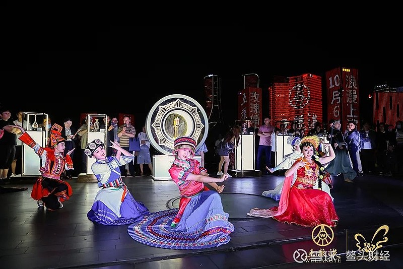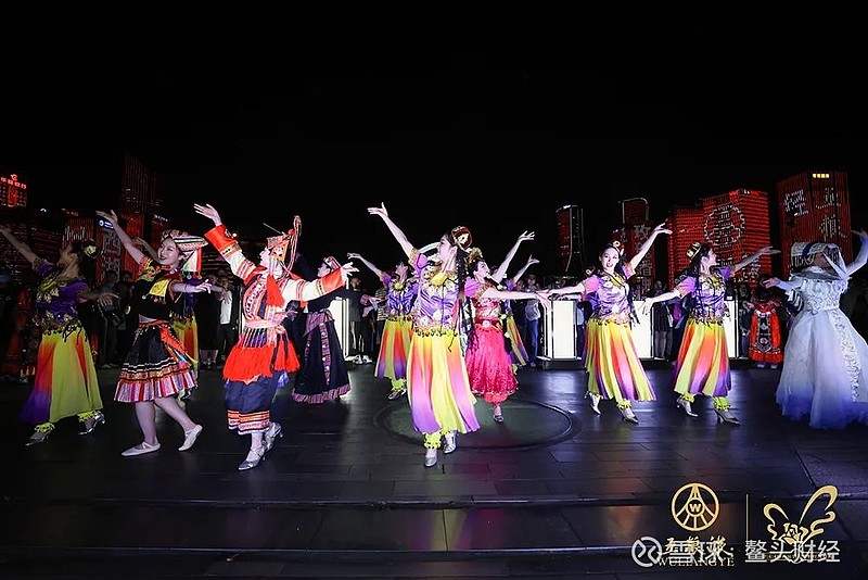 伴随着大气磅礴的灯光秀音乐,一群美丽的维族姑娘在灯幕下的城市阳台跳起了热情洋溢的新疆舞蹈,苗族、蒙古语、羌族、独龙族等少数民族姑娘跟随节奏发出声声呐喊,跳起了她们的民族舞蹈,优美的舞姿吸引了现场上万人的目光。