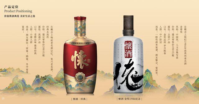 其中,“懐酒·经典”采用了北宋王希孟《千里江山图》为设计元素,产品包装由知名包装设计师万宇设计,瓶型形似元宝,寓意环抱财富,加之著名书法家侯开嘉书写的懷酒字体,相得益彰,具有颜值爆款、内蕴丰富的特点,并确立了以“老牌品味 酱香经典”为产品口号。