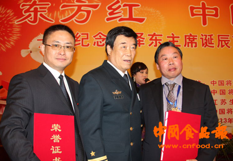 中国将军后代合唱团团长民族英雄马本斋之子马国超将军(中)为席玉(左)对中国文化的贡献颁奖。