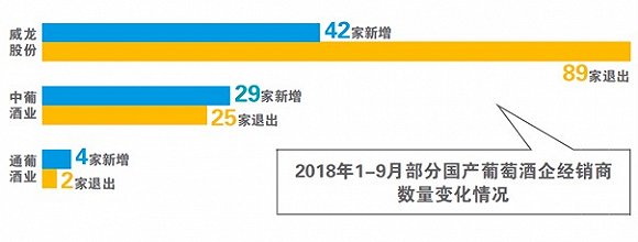 中信国安葡萄酒业股份在2018年1-9月新增经销商29家,退出经销商25家,较2017年年末微增4家。此外,中信国安葡萄酒业股份包含团购在内的直销渠道销售收入下跌了43.42%,批发代理及经销商渠道的销售收入则下跌了9.57%;通化葡萄酒股份的表现同样不容乐观,年末经销商数量较2017年年末仅增加两家,而从销售收入上看,含团购的直销渠道销售收入大幅下滑38.05%,批发代理渠道销售收入则大幅下滑30.79%。
