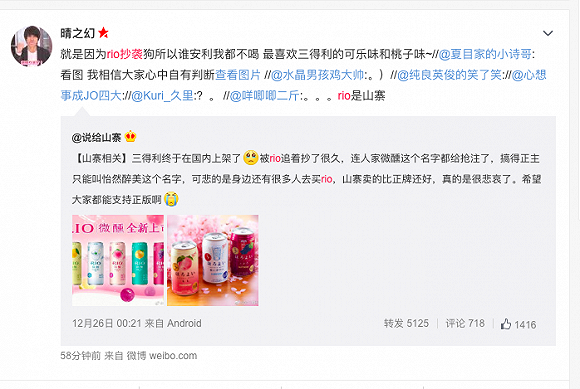 早前在HOROYOI并未正式登陆中国时,在社交媒体及电商网站上,便有不少消费者通过推荐或是发布照片为HOROYOI自发宣传。此前国产预调酒品牌RIO被曝包装、口味和广告创意均抄袭HOROYOI,在微博中有不少人表示“希望HOROYOI快点进入中国”。