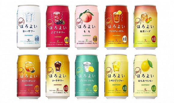 HOROYOI是日本销量最好的Chu-Hi(チューハイ)酒之一。Chu-Hi通常由果汁、蒸馏酒和苏打水等原料混合而成,这类酒精饮料在日本被划分为第三类啤酒或发泡酒,由于往往加入水果等调味、酒精度更低,且在日本税法中比普通啤酒纳税更低,近几年受到不少20岁至35岁年轻人青睐。而日本三得利旗下的HOROYOI由于包装清新且口味众多,在女性消费者中格外受欢迎。