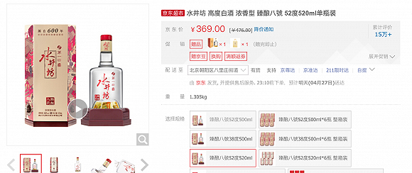 但在终端市场上其实可以留意到,消费者认可度并不是那么高。比如,在京东超市,官方建议售价478元的水井坊浓香型臻酿八号52度(500ml单瓶装)只要364元就可买到,而在大多数经销商处购买,如果量大,价格则更低。