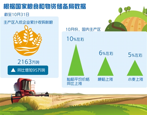 近年来,国家持续推进粮食收储制度改革,市场主体风险意识不断增强,加工企业主动多建库存备足原料,贸易商和经纪人积极收粮,市场化收购比重不断提高。今年小麦和早籼稻市场化收购超过90%。在黑龙江,象屿农产早在9月15日就开始入市收购,目前已收购玉米170多万吨;在湖北,武汉兴正实业有限公司已经收购中晚籼稻600多万斤。