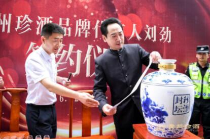 2020年6月12日,贵州珍酒与刘劲品牌代言签约仪式在贵州遵义举行。2020年是贵州珍酒全新十年战略规划的开启之年,在这个重要的节点时刻,特别选择在贵州珍酒厂1975年“原茅台酒易地生产试验厂”内隆重举行媒体见面会,宣布国家一级演员、著名影视表演艺术家刘劲作为珍酒全新品牌形象代言人,随着刘劲与贵州珍酒签约代表贵州珍酒销售有限公司总经理郭亮完成签约仪式,刘劲正式成为贵州珍酒品牌形象代言人。此次签约仪式有幸邀请到遵义市经济技术开发区管委会副主任蔡远伟以及百余家媒体朋友共同见证。