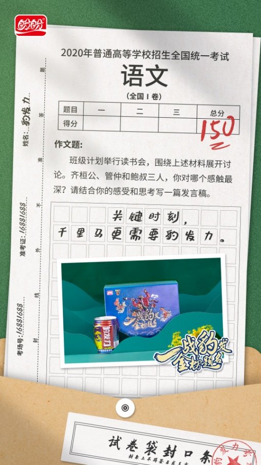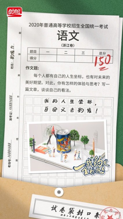 考场上的考生们奋笔疾书,考场外的助力团们也不甘示弱,随着高考每科的停笔收卷,热搜不断,各大品牌也全都化身2020届“5G冲浪团”考生互相battle起来。陪伴了无数考生一起走进高考“战场”的盼盼食品也加入了这场PK赛,更是交出了一份【高考热点营销】的150分“满分卷”。