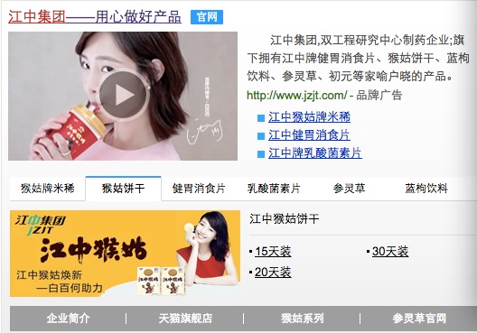 江中猴姑米稀是白百何最新代言的产品,江中集团也正加大在微博、电视媒体、节目植入以及网络广告的投放,甚至白百何在真人秀《向往的生活》中做客时,也被节目嘉宾直接称呼为“米稀姐姐”。