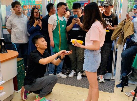 2019年5月20日表白日,如电影桥段般的求婚仪式在山西太原悄然上演。当天,大象在山西太原唐久便利店内助一名粉丝向女友表白示爱,引群众竞相围观。