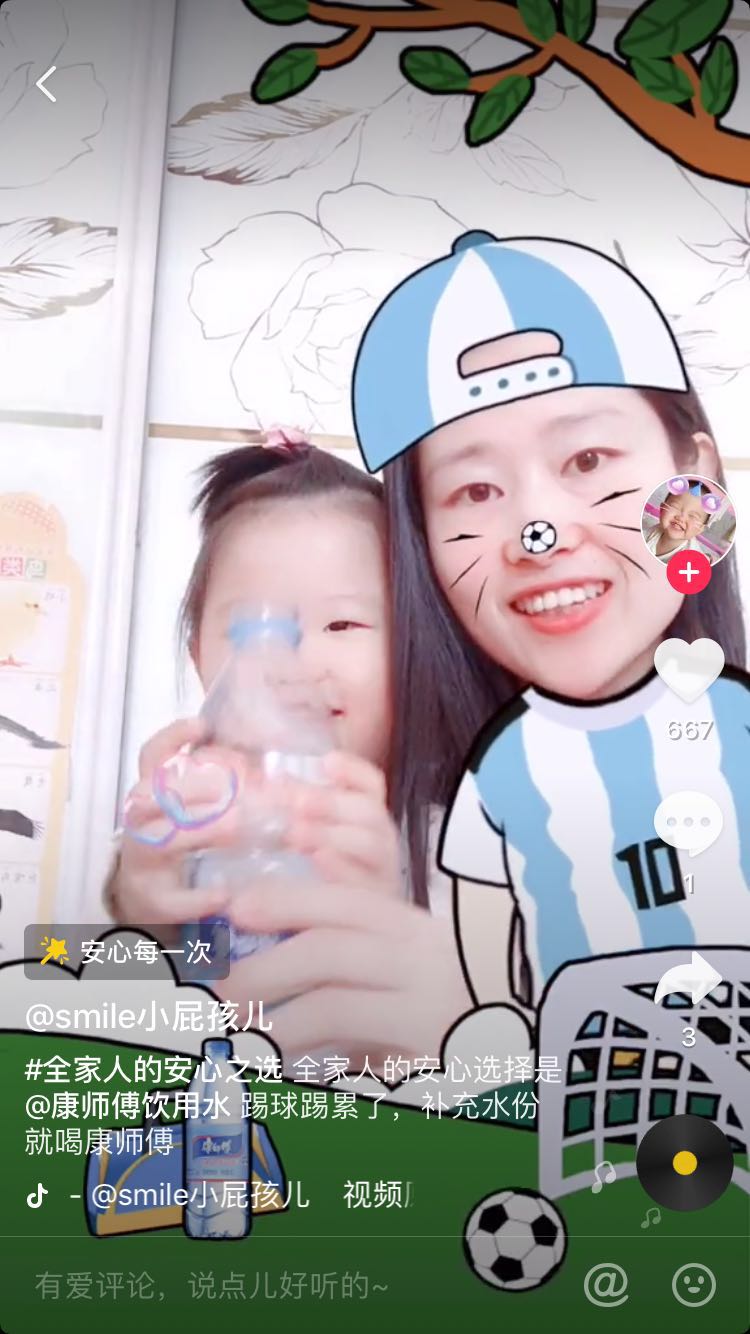 在暖心H5活动继续火热传播的同时,康师傅饮用水选择与全国许多新手宝爸宝妈都爱玩的抖音平台进行深度合作,来延续和推广自己“全家人的安心之选”理念。5月24日,康师傅饮用水在抖音上线抖音亲子季活动,以 “全家人的安心之选”抖音挑战赛吸引全国的宝爸宝妈们晒起自家娃来。