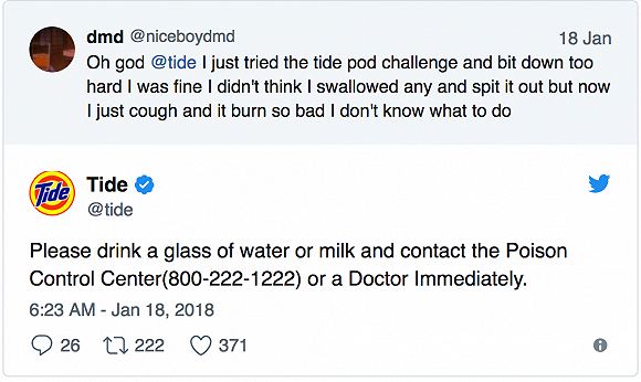 在美国,年轻人们掀起了一项名为“汰渍挑战”的较量。参与这项挑战的主要是青少年,他们不仅直接吞食汰渍洗衣球,甚至想出了用洗衣球烤披萨的吃法。像之前流行过的“冰桶挑战”,“汰渍挑战”也在社交网络上形成了病毒式扩散。