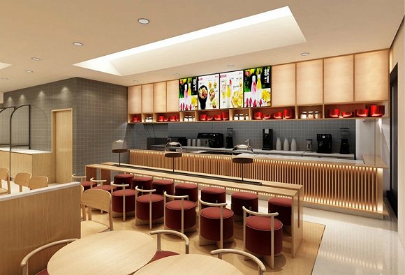 如今的乡村基店面设计简洁明快,有标准化的出餐模式,门店选址也更倾向于选择百货商场周边、或社区等人流较大的位置。每天,由中央厨房统一制作酱料,配送到各个门店,剩下的炒制环节全部交由门店来完成。