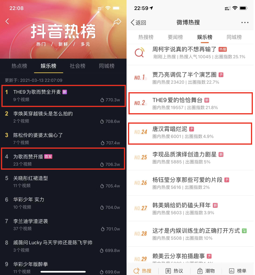 由“好人家高端火锅底料“赞助合作的《为歌而赞》热辣开播,播后4小时内全网收割4个热搜,抖音端观看量首播2小时破5000万,截止当晚23:35户参与互动投票超180万音符。不论是乐坛前辈“摇滚教父”崔健的开场献唱,还是情歌王子张信哲、励志天后张韵涵的先后出场都垫定了节目的高起点高定位,最终第一期以唱作歌手唐汉霄的新歌《烂泥》成为现场获赞最多的歌曲,THE9《爱的恰恰》不仅收获热搜,在抖音平台的点赞也排名第一;从节目首播看来,赛制创新和麻辣点评是其最大亮点。《为歌而赞》的热议,再现华语乐坛的实力唱将与新世代的年轻音乐人的同台对决,引爆不同圈层的音乐碰撞。